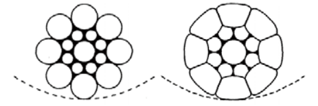 √更高的破断拉力 -------- 提高组股相邻钢丝间接触面积,