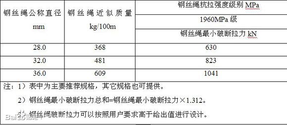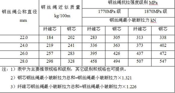 架桥机用钢丝绳力学性能参数表如表1: