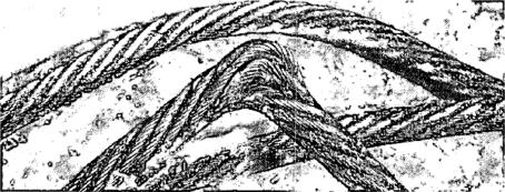 分析:这种变形出现在具有钢芯的钢丝绳上。当外层绳股发生脱节或变得比内部绳股长的时候就会发生这种变形。具体分析请见:钢丝绳散股和“鸟笼”的形成及预防措施